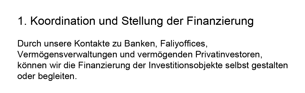Mandanten sind Privatinvestoren, Family-Offices, Vermögensverwaltungen und Stiftungen.
