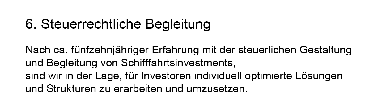 wir sind eine Strategieberatung für respektable Vermögen in der Anlageklasse „Schiffe“.